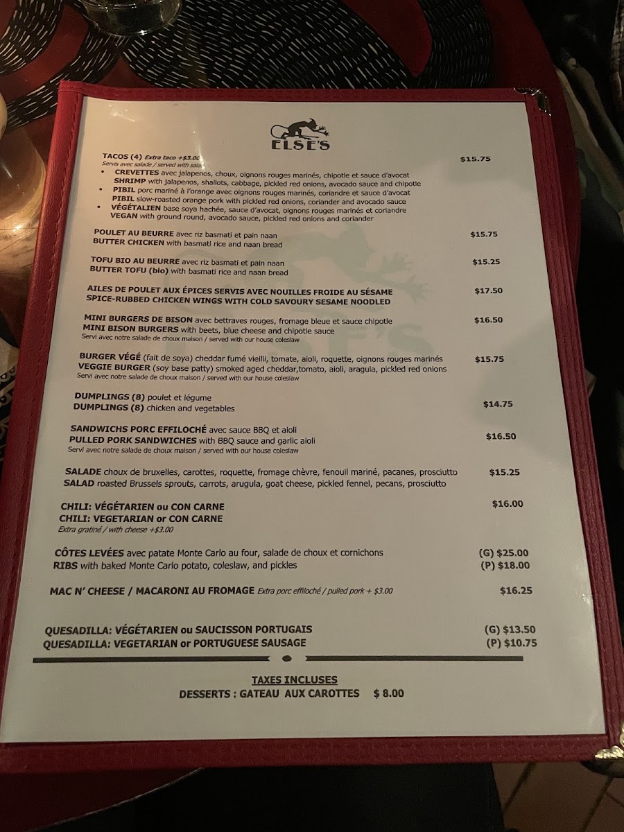 With its inviting mix of bar classics and comforting dishes, the menu makes Else's a spot where both food and atmosphere set the tone for easygoing, enjoyable moments throughout the day.